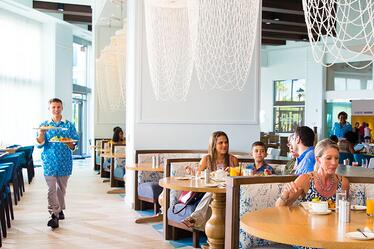 I am going to be honest: This is the WORST Universal hotel. It does have a big, impressive colonial Spanish revival exterior, but then once you go inside, you are disappointed. This is not a hotel for those who don't like in-your-face branding. For me, the music videos can be quite annoying. Overall, I only recommend this one if you can get a discount, as it also has the express benefit, or if you like the Hard Rock brand (also has water taxis). If you care about food, the hotel features: The Kitchen (full service), The Palm (Fine Dining), and Emack & Bolio's Marketplace (counter service).